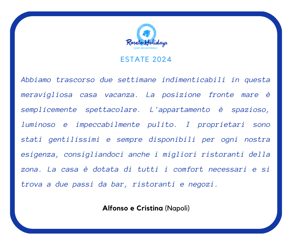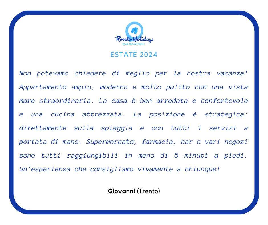 With a prime location directly on the coast of Italy, RosetoHolidays is the perfect way to stay close to the beach even when you’re stuck at your laptop. 2 weeks of getaway from stressful work in this beautiful Italian small city… where the owners are very friendly and speak English!“